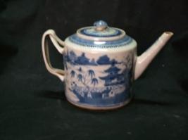 | Description / विवरण | Tea - pot ornamented with houses on a river bank. |