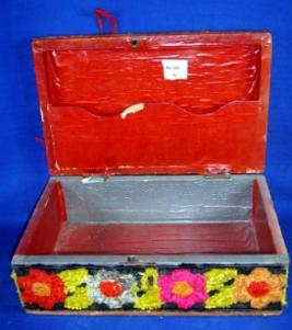 | Description / विवरण | Antimony box made of wood and covered with velvet and has floral designs. The box is in rectangular in shape. |