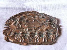 | Description / विवरण | It is a small copper plate with a Shiva family. It is having a figurative composition of Shiva, Nandi, Ganesha, Parvati and seven seven monkeys. One is missing. All are in worship pose.Shiva and Parvati are on the top. A Chhatra a decorated umbrella is seen over them. |