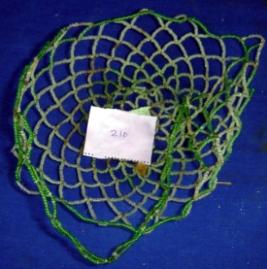 | Description / विवरण | Circular jali basket of tiny beads of green and white colours. It has a thin beaded handle. |