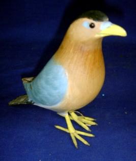 | Description / विवरण | Bird, made of paper mache, of light brown colour with sky blue wings and yellow beak. |