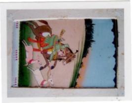 | Description / विवरण | The painting depicts a hunter riding on the horse and catching the deer with arrow simultaneously. In foreground. There is green field and to this glowing in river & background contains trees, flowers & sky. |