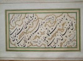 | Description / विवरण | It is an epithet katte whose title is Mann-Umar-Tu-Ja . It is hand written in Nastaliq form by Ashraj Ali. This epithet describes the poetry sher-o-shairyee .It is written in Persian script and Persian language. |