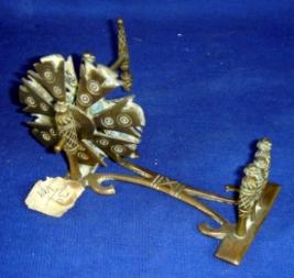 | Description / विवरण | Small decorative brass spinning wheel Charkha having incised circular and linear designs. |