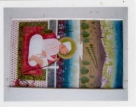 | Description / विवरण | The painting depicts Sheer Singh ji smoking hukka , wearing white tunic & turban, there is halo behind his head, holding rosary in his hand, sitting on a red colour decorated carpet, inside chaukhat . The background contains flowers, rivers, fields, trees, mountains, part of the town & sky. |