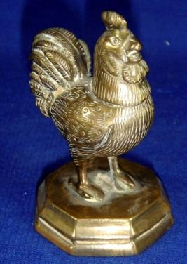 | Description / विवरण | Tiny cock made of brass standing on octagonal pedestal. Its feather and eyes are made with incised lines. |