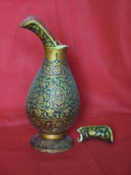 | Description / विवरण | Vase with bifurcated mouth, raised ornament, black ground. lacquered pottery. |