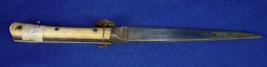 | Description / विवरण | Iron knife having straight single edged blade and ivory hilt which has stains and many cracks. |
