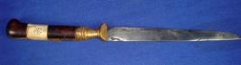 | Description / विवरण | Steel single edged knife with wooden hilt. The joint is having koft work of golden paint. |