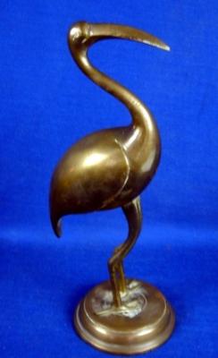| Description / विवरण | Brass image of a crane standing on a circular pedestal of same material. |