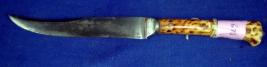 | Description / विवरण | Iron knife with slightly curved blade and ivory fitted handle. |
