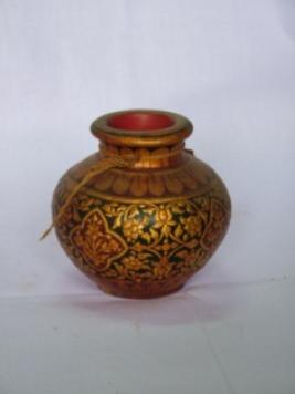 | Description / विवरण | Kulari small pot , raised ornamentation in gold and black and red ground. |
