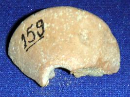 | Description / विवरण | Fragment of a terracotta bead, plano convex in shape. It is broken into half. |
