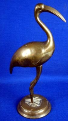 | Description / विवरण | Brass image of a crane standing on a circular pedestal of same material. |