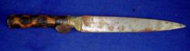| Description / विवरण | Iron knife with straight blade and wooden handle. The blade is slightly rusted. |