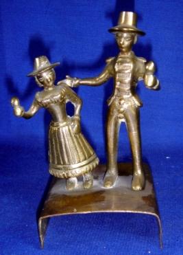 | Description / विवरण | Small brass statue of a dancing European couple placed on a rectangular platform. |