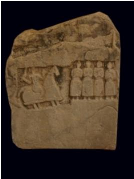 | Description / विवरण | Memorial stone with epigraph depicting a horse rider, Rewant on horseback with a sword in hand in the left side. On the right side of the stone, four standing human figure is depicted with folded hands. There is epigraph of 3 lines on top of the niche. All the sculpture are in low relief and almost mutilated. Inscription dated VS. 1554. |