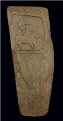 | Description / विवरण | Memorial stone with the depiction of a human figure on horseback in a niche who is probably Rewant. The figure is holding a sword in his right hand and holding the rein of the horse in his left hand. Below this niche, there were two lines of the inscription which is completely rubbed off. |