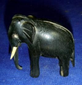 | Description / विवरण | Wooden elephant in standing position. Its task are prominent. |