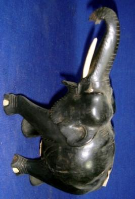 | Description / विवरण | Elephant made of stone in standing position with curved trunk, open mouth and prominent tusks. |
