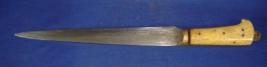 | Description / विवरण | Iron Faulad Chhura having broad straight blade and a ivory handle with golden koft work on the parch and lower part of the blade. |
