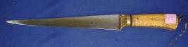 | Description / विवरण | Chhura Knife having straight blade. The handle is made of horn and the lower part of the blade has koft work. The scabbard is made of wood covered with cloth having metal chaunthi and kanthi. |