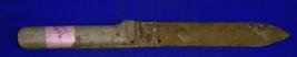 | Description / विवरण | Iron knife the blade is straight, the handle is made of wood painted with silver colour. |