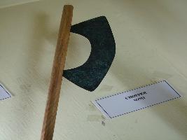 | Description / विवरण | It is a copper parshu axe without handle its working edge is concave and sharp. It is flat and one end has semicircular shaped cut mark with two pointed tip. |