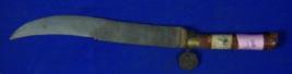| Description / विवरण | Iron knife chhuri having slightly curved blade with a wooden handle. |