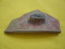 | Description / विवरण | It is a rim portion of a basin in red ware. It s rim is slightly nail-headed. On the outer surface there is a handle like holder which is partly broken. |