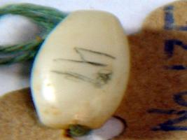 | Description / विवरण | Small glass bead, rectangular in shape. It is transparent in colour with a perforation to pass the thread. |