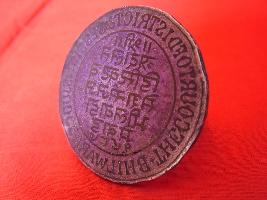 | Description / विवरण | It is a circular stamp seal , made of silver. It is inscribed with Devnagari and Roman script. It is read as The Court of District and Sessions Judge, Bhilwara, in English language. Samvat 1987. |