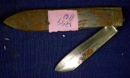 | Description / विवरण | Iron foldable knife with straight blade. It is slightly rusted. |