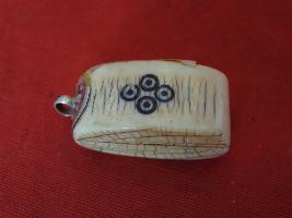 | Description / विवरण | It is an oblong shaped pendant. Hook is fixed with a silver decorated plate for hanging purpose and decorated with inlay work. |