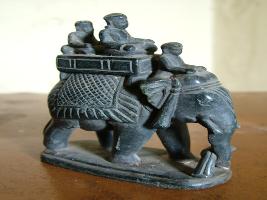 | Description / विवरण | It is a miniature of black elephant. Two man gifted above it. Elephant is holding object with trunk. |