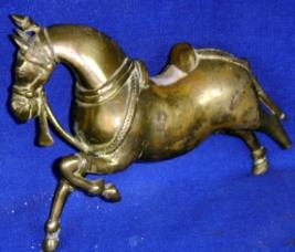 | Description / विवरण | Horse made of brass in running position. Its hind left limb is broken. Rein and saddle is carved on its body. |
