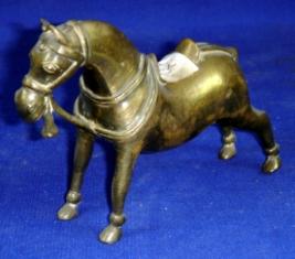 | Description / विवरण | Horse made of brass in standing position. Rein and saddle is visible on its body. |