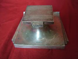 | Description / विवरण | It is an ink pot with square base, circular body and a square lid. The ink container is made up of glass. The lid is decorated with incised decoration. |