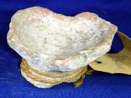 | Description / विवरण | Incense burner, wheel made with circular pedestaled base, flared body and partly broken rim. Depression can be seen from exterior with two incised concentric circle in centre. Base is slightly broken from edges. |