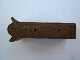 | Description / विवरण | It is a seal made from copper. It has twenty rupee value. It is partially rectangular in shape. |