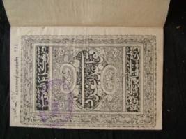 | Description / विवरण | It is a epithet katte whose title is Karma-Maksadem . It is handwritten in Nastaliq form by Mohd. Amir Baksh. This epithet describes the praising of God. It is written in black ink on the brown background.It is written in Persian script and Persian language. |
