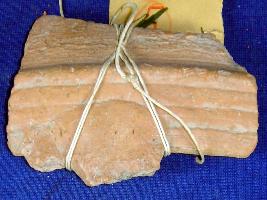 | Description / विवरण | Incense burner with circular pedestaled base which is slightly broken, flared body and featureless rim. Wavy designs are seen on the exterior. |