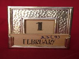 | Description / विवरण | It is a rectangular table calender stand with two sockets for holding cards date & month . It is decorated with floral and geomatrical designs. |