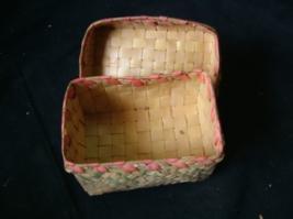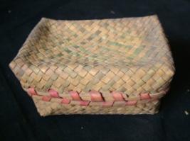 | Description / विवरण | A box made of palm leaf, ornamented with red and green stripes. |