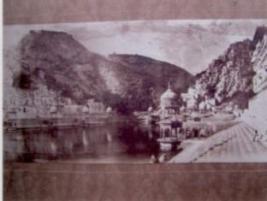 | Description / विवरण | In this photograph, a tank is shown in which chatris and steps are visible. Besides this, a hill with a fort and part of a building is also visible. |