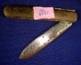 | Description / विवरण | Iron foldable knife with straight blade. It is rusted. |