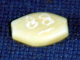 | Description / विवरण | Shell bead, circular and flat in shape with plain surface and a perforation. |