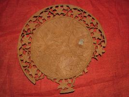 | Description / विवरण | It is a plate of wood having floral creeper design and plant design carried on the plate, with leaf. |