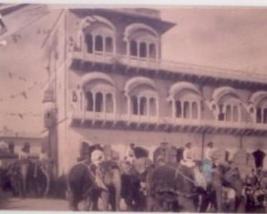 | Description / विवरण | This is the marriage photograph of Shri Sawai Maharaja Veerandra Shromani Dev of Alwar. This photograph is a part of the Nikasi Procession Servants block. In this photograph elephants with rider is shown. |