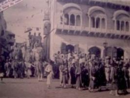 | Description / विवरण | This is the marriage photograph of Shri Sawai Maharaja Veerandra Shromani Dev of Alwar. Elephants cloth robed and Mahunta are shown. Besides this part of the building is also shown. This is Nikasi procession photograph. |